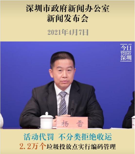 在今年4月初深圳召開的新聞發布會上,針對垃圾分類的實施問題,市城管和綜合執法局副局長楊雷表示:自實施《深圳市生活垃圾分類管理條例》以來,約5500個小區和城中村已推行“集中分類投放和定時定點督導模式”,全市生活垃圾回收利用率穩定在40%以上,人人關注分類、參與分類的社會氛圍在深圳初步形成。